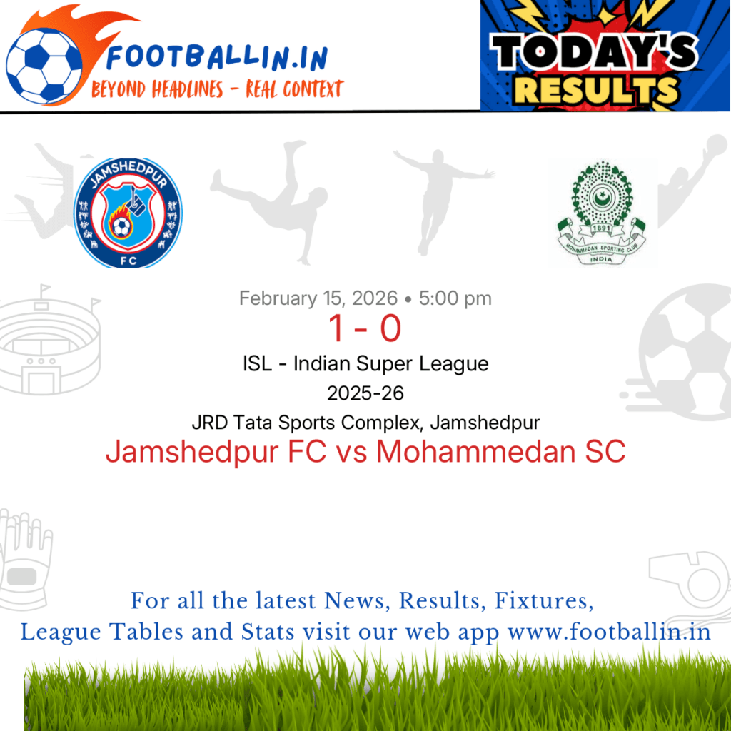 ⚽📊 League Table • Top Scorers • Statistics 📈⚽ Jamshedpur FC defeated Mohammedan SC 1-0 on Feb 15, 2026 in the ISL – Indian Super League at JRD Tata Sports Complex, Jamshedpur, in a tense encounter. Madih Talal struck the decisive goal early on in the 8’, securing the win for Jamshedpur FC, his solitary […]