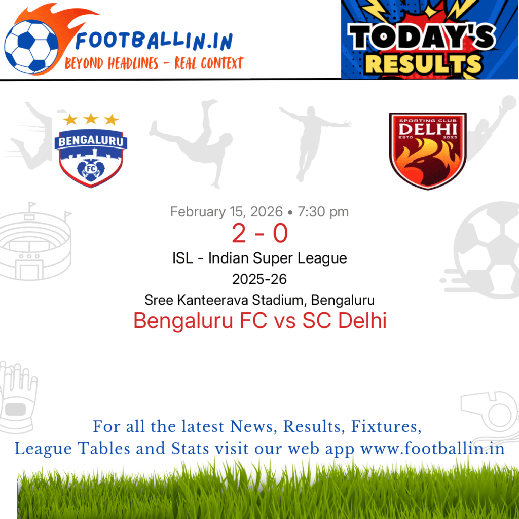 ⚽📊 League Table • Top Scorers • Statistics 📈⚽ Bengaluru FC defeated SC Delhi 2-0 on Feb 15, 2026 in the ISL – Indian Super League at Sree Kanteerava Stadium, Bengaluru, in a closely-fought battle. Siva Sakthi put Bengaluru FC in front in the 45+1’. Sunil Chhetri closed the match with a strike for Bengaluru […]