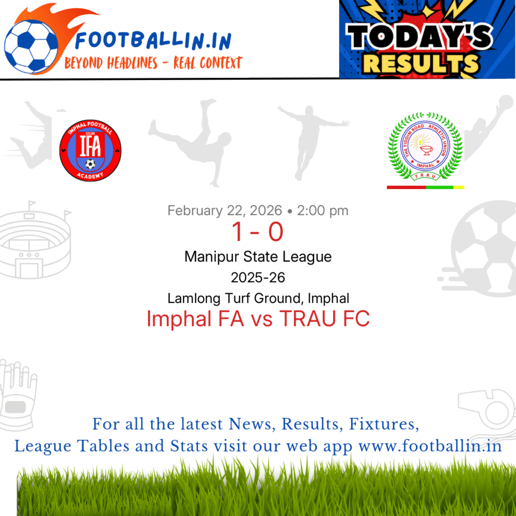 ⚽📊 League Table • Top Scorers • Statistics 📈⚽ Imphal FA defeated TRAU FC 1-0 on Feb 22, 2026 in the Manipur State League at Lamlong Turf Ground, Imphal, in a closely-fought battle. Yokmipam Awungchihui's goal in the 5’ ultimately decided the contest, his solitary goal proved sufficient for Imphal FA. #indianyouthfootball #indianfootball #indianwomenfootball #indianfootballleague […]