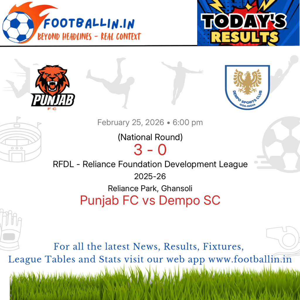 Punjab FC defeated Dempo SC 3-0 on Feb 25, 2026 in the National Round of the RFDL – Reliance Foundation Development League at Reliance Park, Ghansoli, in a commanding display.