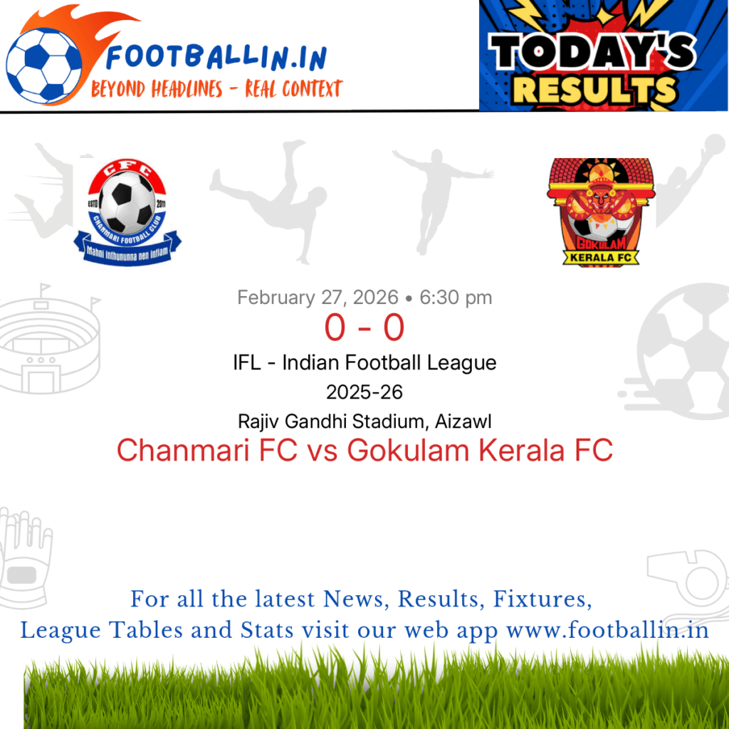 ⚽📊 League Table • Top Scorers • Statistics 📈⚽ Namdhari FC and Aizawl FC drew 1-1 on Feb 27, 2026 in the opening match of the IFL – Indian Football League at Namdhari Ground, Ludhiana, after a tight, well-balanced contest. Vanlalriatzuala K put Aizawl FC in front in the 43’. Abdoulaye Diallo netted a dramatic […]