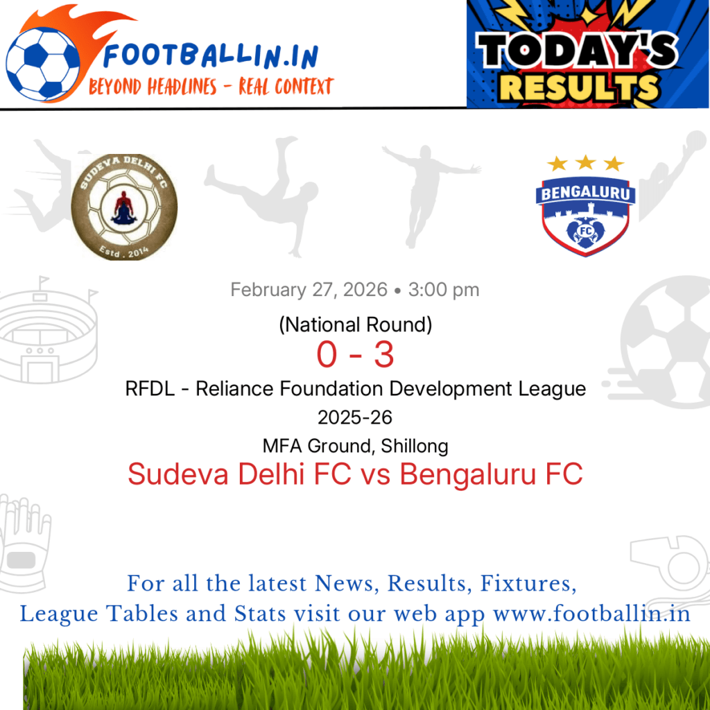 ⚽📊 League Table • Top Scorers • Statistics 📈⚽ Bengaluru FC defeated Sudeva Delhi FC 3-0 on Feb 27, 2026 in the National Round of the RFDL – Reliance Foundation Development League at MFA Ground, Shillong, in a heavily favored encounter. Gautham Shivakumar in the 23’, Chaphamayum Rohen Singh in the 45+1’ and Rakshit P […]