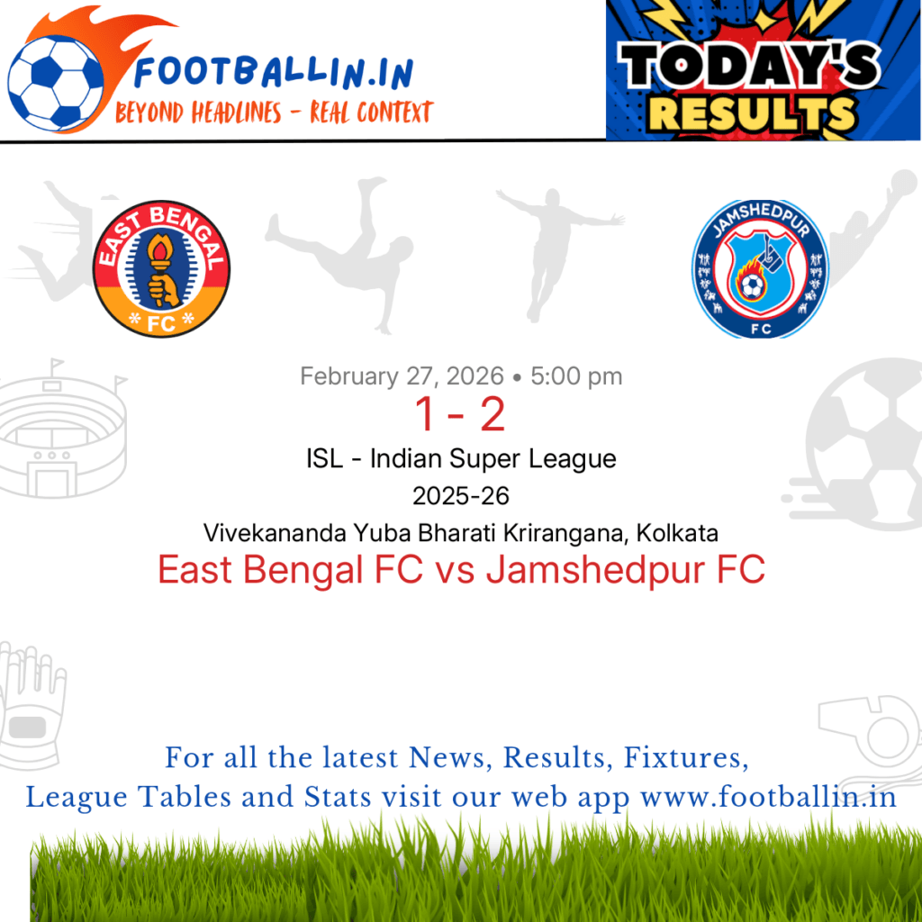 ⚽📊 League Table • Top Scorers • Statistics 📈⚽ Jamshedpur FC defeated East Bengal FC 2-1 on Feb 27, 2026 in the ISL – Indian Super League at Vivekananda Yuba Bharati Krirangana, Kolkata, in a closely-fought battle. Edmund Lalrindika put East Bengal FC in front in the 17’. Stephen Eze brought Jamshedpur FC back on […]