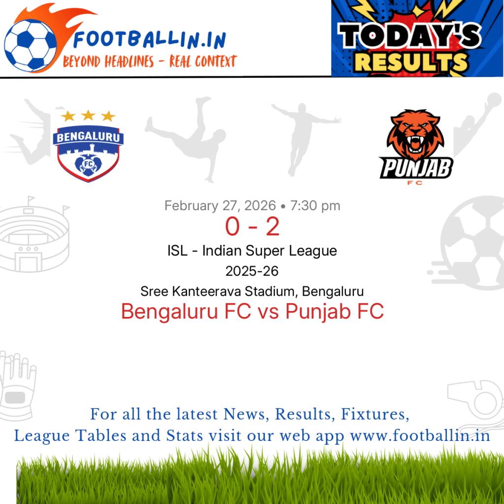 ⚽📊 League Table • Top Scorers • Statistics 📈⚽ Punjab FC defeated Bengaluru FC 2-0 on Feb 27, 2026 in the ISL – Indian Super League at Sree Kanteerava Stadium, Bengaluru, in a closely-fought battle. Nsungusi Effiong scored a brace for Punjab FC in 20’ and 32’. #indianyouthfootball #indianfootball #indianwomenfootball #indianfootballleague #footballin #islindiansuperleague #bengalurufc #punjabfc