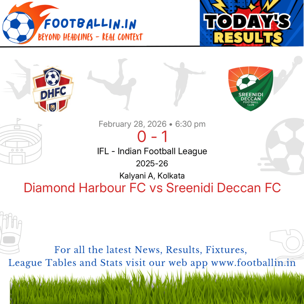 ⚽📊 League Table • Top Scorers • Statistics 📈⚽ Sreenidi Deccan FC defeated Diamond Harbour FC 1-0 on Feb 28, 2026 in the IFL – Indian Football League at Kalyani A, Kolkata, in a closely-fought battle. The match was settled when Fabrice Kah Nkwoh found the net in the 60’, his single effort sealed the […]