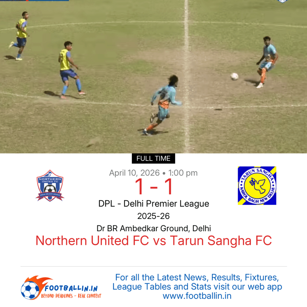 ⚽📊 League Table • Top Scorers • Statistics 📈⚽ Northern United FC and Tarun Sangha FC drew 1-1 on Apr 10, 2026 in the DPL – Delhi Premier League at Dr BR Ambedkar Ground, Delhi, after a competitive draw. Manglen Thang Singsit put Tarun Sangha FC in front in the 59’. Benjamin levelled for Northern […]
