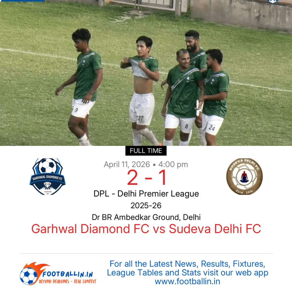 ⚽📊 League Table • Top Scorers • Statistics 📈⚽ Garhwal Diamond FC defeated Sudeva Delhi FC 2-1 on Apr 11, 2026 in the DPL – Delhi Premier League at Dr BR Ambedkar Ground, Delhi, in a competitive clash. Cletus D Paul put Garhwal Diamond FC in front in the 49’. Altamash Sayed extended Garhwal Diamond […]