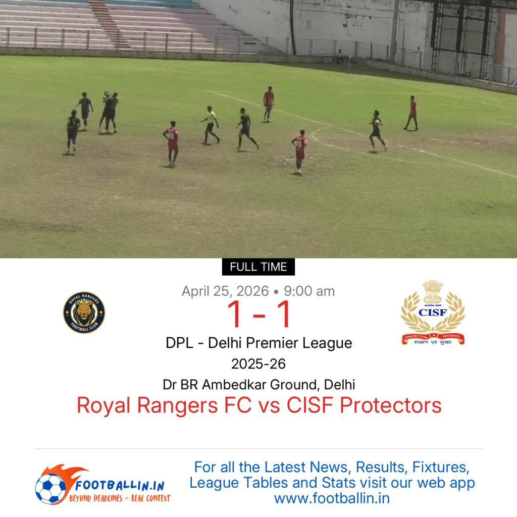 Royal Rangers FC and CISF Protectors drew 1-1 on Apr 25, 2026 in the DPL – Delhi Premier League at Dr BR Ambedkar Ground, Delhi, after a evenly fought battle.