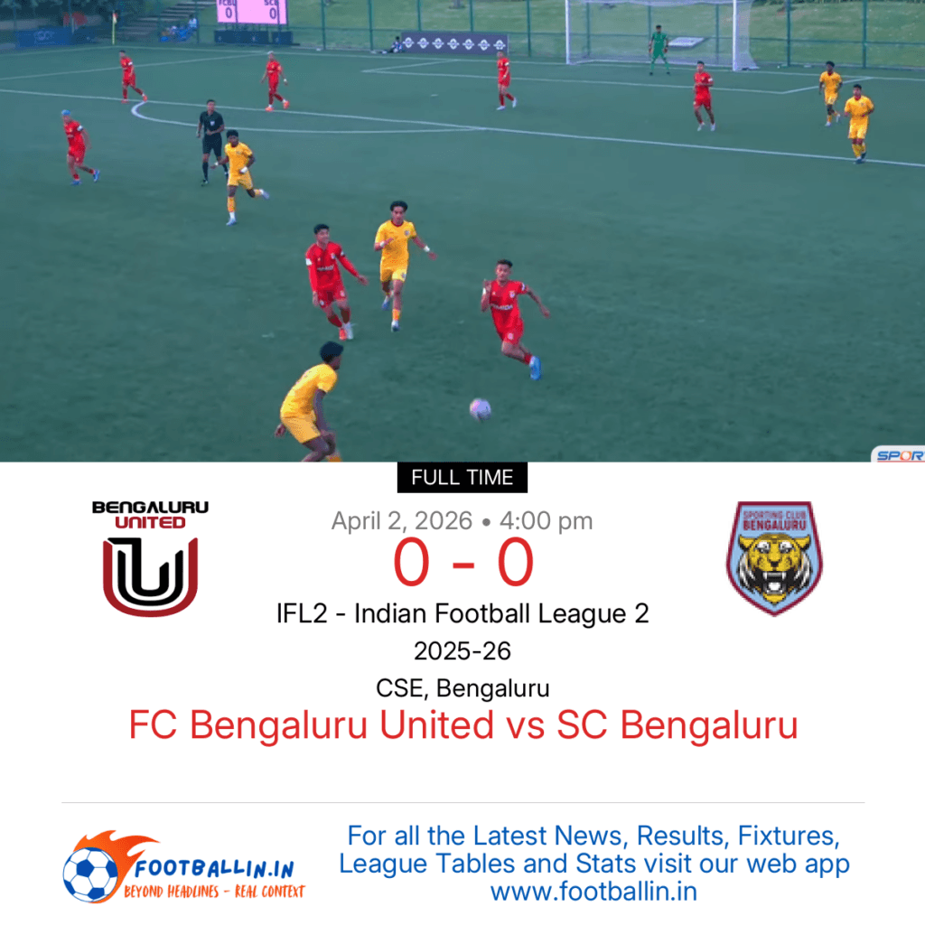⚖️ Derby Deadlock!FC Bengaluru United and SC Bengaluru finished level at 0-0